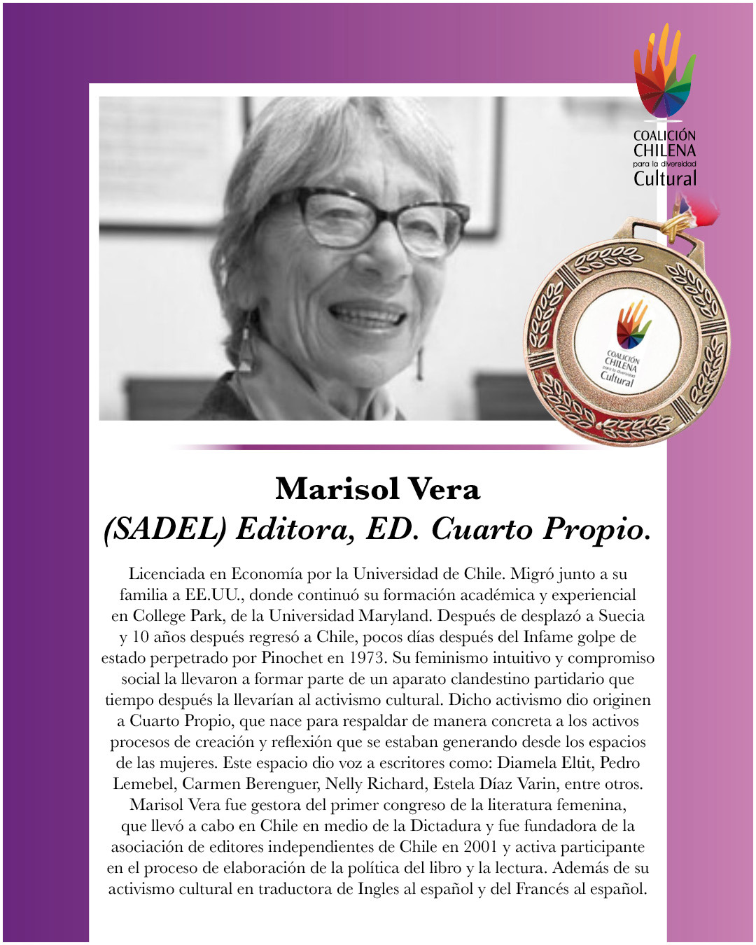 Premio para Marisol Vera El día 19 de octubre de 2024 nuestra socia y consejera de SADEL, Marisol Vera, recibió la Medalla al Mérito Cultural de la Coalición Chilena para la Diversidad Cultural, junto con una veintena de destacados actores del mundo de la cultura nacional. Felicitamos a la fundadora, editora y directora de Editorial…